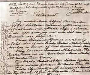 诺贝尔奖,是以瑞典著名化学家阿尔弗雷德·诺贝尔(上图)命名的。诺贝尔生前立了一份遗嘱,遗嘱(下图)声明,将自己的财产全部用来设立一个奖励基金,“它的利息将每年以奖金的形式,分配给那些在前一年里曾赋予人类最大利益的人。