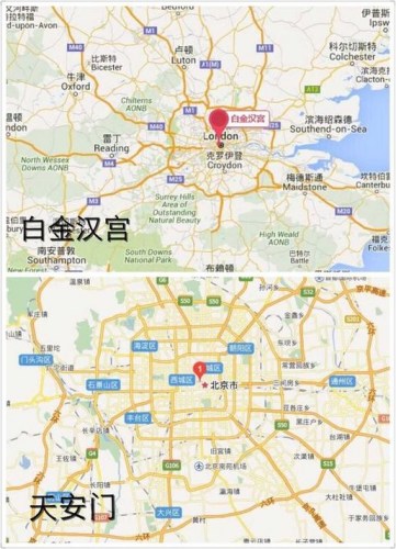 听着这一系列的描述,大家是不是觉得有那么一点似曾相识呢?有广场,有国徽,有纪念碑,有纪念堂,旁边有公园,还有士兵常年站岗!哈哈!没错,就是跟我们的天安门的整体设置有点类似。而且他们所在整个城市的地理位置也是很相似的哦。下面小编一张图告诉你们,一切都是缘分啊!