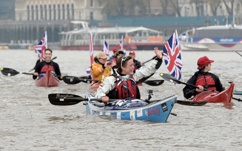 报道称,欧腾(Sarah Outen)2011年4月启程,靠着骑单车、划独木舟和划船旅行了2万5000英里(40233公里)。