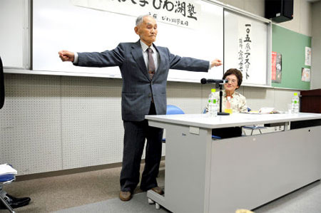 中新网11月13日电 据日媒报道,日本京都市105岁的老人宮崎秀吉,不久前参加日本老年人田径竞标赛的百米跑,用时仅42秒,打破了百岁老人组的世界纪录。近日,他在日本滋贺县进行演讲,向听者分享了其保持健康的秘诀。