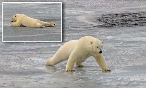据报道,摄影师盖瑞•摩根在加拿大西北地区的波弗特海,拍到这只北极熊“如履薄冰”的照片。为海岸巡防队工作的摄影师摩根表示,当他们的破冰船停泊时,便看见这只北极熊从远处逐渐接近。他表示:“能看到这么大只的雄性北极熊用肚子在冰面上滑行实在很有趣。”