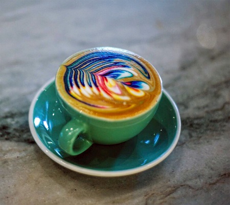 据报道,咖啡师梅森•索尔兹伯里(Mason Salisbury)把咖啡表层的奶泡当“画布”,利用食用颜料,在上面创作出色彩斑斓的拉花“画作”,让顾客无比惊艳。