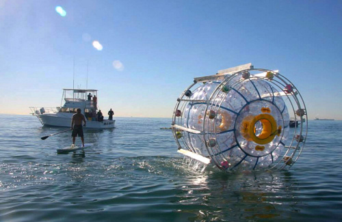 据报道,摩天轮上塞有小充气球,可以使摩天轮漂浮在海面上。摩天轮的中心有一个大的充气胶囊,人可以在胶囊内步行来带动整个摩天轮充气球在水面上前进。充气胶囊内巴卢奇准备了蛋白棒,水和净化水的装置。