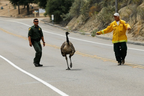 中新网6月23日电 据外媒报道,美国西部多个州发生山火,不仅当地民众需要撤离,连山林里的动物也遭了秧。日前一只鸸鹋为躲避山火,竟然慌不择路跑上高速公路,幸好交警耐心将其劝离。