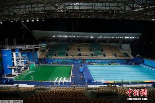 报道称,在玛利亚林克游泳中心(Maria Lenk Aquatics Centre)跳水池的水变色一天之后,相邻的水球池池水也开始变绿,12小时前该池池水还是正常的颜色。