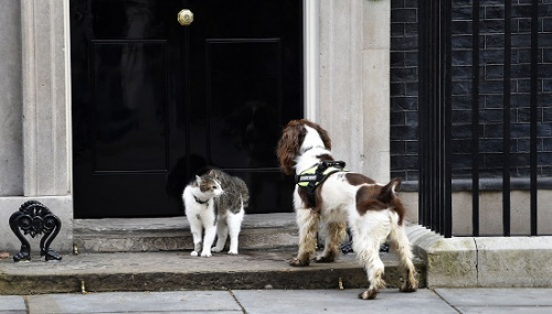 为了治理鼠患,英国上任首相卡梅伦在2011年把“拉里”请进了首相府。虽然头衔是“首席捕鼠官”,“拉里”却因爱打架而名震唐宁街,它和外交部猫咪“帕默斯顿”打架的消息经常被媒体报道。