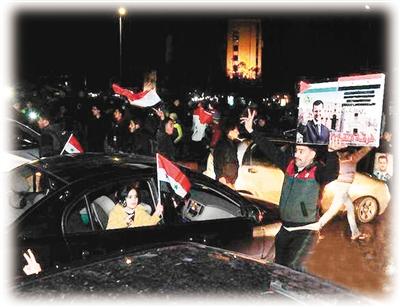 2016年12月22日,在叙利亚北部城市阿勒颇,民众上街庆祝叙政府军收复该市。