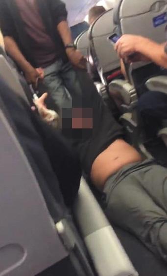 当地时间4月9日,一名亚裔男子被强行拖拽下机。 视频截图