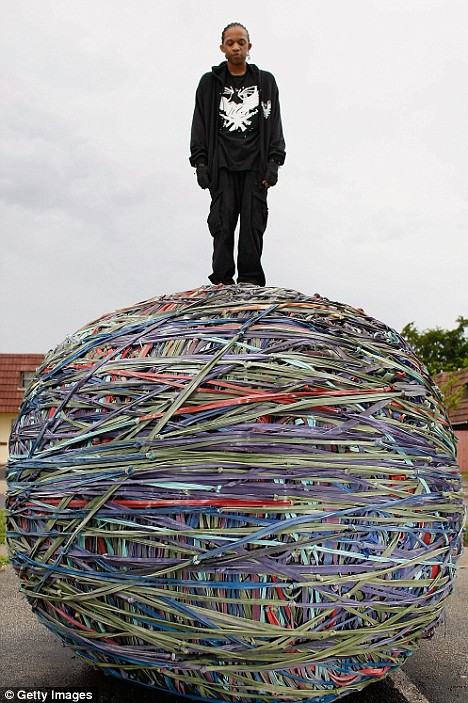 据《每日邮报》8月16日消息,佛罗里达州劳德希尔小镇的一名年轻的售货员日前用橡皮筋缠绕成一个巨大的球,他相信自己创造了世界纪录。