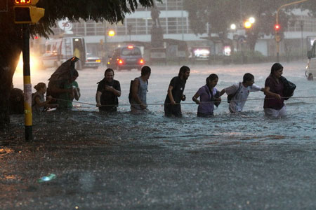 中新网2月21日电 据外电报道,阿根廷首都布宜诺斯艾利斯及附近地区19日遭暴雨袭击,造成至少2人死亡,多个城区被淹,城市交通陷入瘫痪。布宜诺斯艾利斯市内阁主席拉雷塔20日表示,不排除首都地区发生洪水灾害的可能。