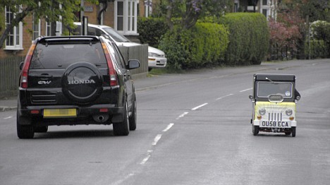 中新网5月13日电 综合外电报道,英国一名男子受儿童玩具邮车的启发,制作出了世界最小的汽车:高39英寸(约99厘米),宽26英寸(约66厘米)。