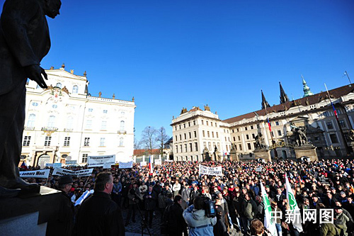 中新网布拉格12月2日电 大约3500名捷克农民2日中午聚集在捷克总统府门前的赫拉德钦斯卡广场,谴责欧盟农业政策偏袒德、奥等老欧盟国家,要求欧盟中农民地位平等,要求政府增加2.1亿欧元农业补充投资。