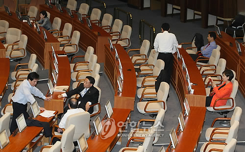 示威从前一天全体会议结束之后,双方企图阻止对方占领议长席开始。尤其在对传媒法和非正规(职雇佣)法案等意见分歧的情况下,双方的示威有可能会一直持续到会期结束的25日。