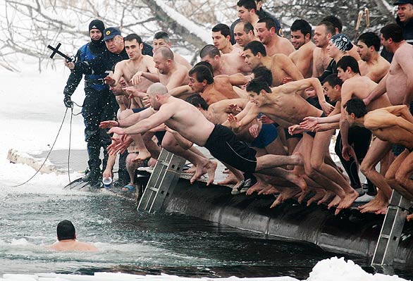 中新网1月7日电 据《华盛顿邮报》报道,在6日保加利亚主显节上,众多人在索非亚一座湖上抢夺牧师投掷的十字架。据称,第一个抢到十字架的人会在新的一年里身体健康。