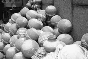 在印度农村地区,农民们通常会选择一种陶罐来储水。这种陶土罐制作简便,不用高温烧烤,定型晾干即可。室外四五十摄氏度的高温,流动的河水都已变热,用陶罐盛水,放在室内避开阳光的角落里,就可达到冷却的效果(见图②)。居民们认为,陶土本性较凉,能起到隔热降温的作用。这丝清凉对盛夏中没有冰箱的穷人来说,尤为珍贵。