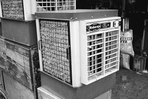 对于大多数印度百姓来说,空调是一件奢侈品。除价格昂贵外,巨额电费以及维修费用也会让他们望而却步,但这并没有影响印度人对空调的追求。印度城市中最为常见的是一种简易的土空调。土空调与34英寸彩电大小相当,构造简单,外形好似一只铁皮百叶箱。土空调三面均加装稻草,一面安装了排风扇,底部是蓄水槽,三根塑料管将一个小型抽水机与稻草相连(见图③)。接通电源后,水泵会将水抽起,打湿稻草,再由排风扇将水汽吹出,起到降温和加湿的双重作用。除环保外,土空调受追捧的主要原因是价格便宜,仅相当于分体式空调价格的1/10,电耗也很低。到印度人家中做客时也常会发现,有的房间即使安装了分体式空调,也还会加装一台土空调。当地朋友拉杰诗·卡拉告诉记者,用电超过一定限度后,电费将会成倍增长,因此节电是必须的,能用土空调时,尽量选择土空调;在高温季节,停电十分频繁,家中的蓄电池无法支持分体式空调这种大功率电器,但土空调这种小功率电器,还是可以持续工作的。