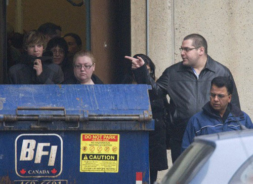 这名发言人无法确认被劫人质的具体数目。但据目击者说,目前有9人被该男子困在大楼顶层的会议室里。