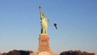 牛人穿喷气背包飞越自由女神像