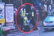 交警陪跪劝导违章女子
