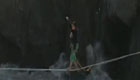 男子走扁带越过虎跳峡