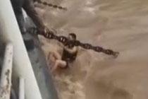 重庆嘉陵江水位突涨 男子冲浪遇险
