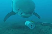 大白鲨水下玩自拍