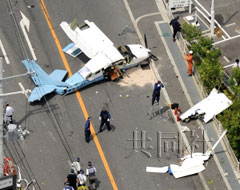 据日本共同社报道,警方透露,出事飞机为八尾市第一航空所有的“Cessna206”,机上有一名男性驾驶员(34岁)和一名男性摄影师(57岁),两人均已自己爬出飞机。另据八尾市消防总部透露,两人被送往医院后被诊断为轻伤。