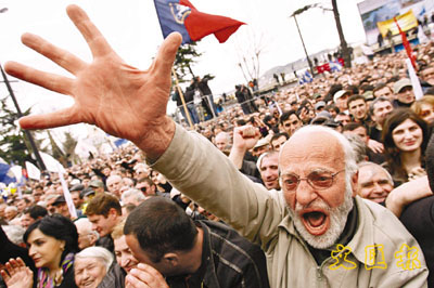 中新网4月10日电 据香港《文汇报》报道,格鲁吉亚首都第比利斯9日有至少6万人上街示威,要求总统萨卡什维利下台。反对派领袖指摘他独揽大权,以及违反他于2003年凭借玫瑰革命上台时作出的改革承诺,矢言每天都会在国会外示威,直至他下台。