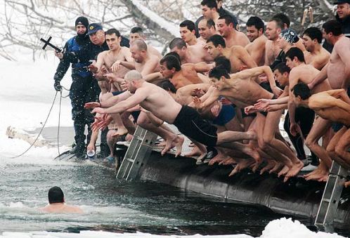 在希腊雅典,保加利亚索非亚,东正教教徒都在水中进行一项争夺十字架的传统仪式,藉此祈愿新的一年健康平安。