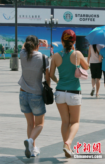 虽然重庆正遭遇持续高温天气,但山城美女却没有因高温烘烤而黯然失色,反而上演“热辣”风情,依旧引领时尚风潮。走在重庆的大街小巷,时髦女孩们戴上墨镜,穿上热裤,足蹬小凉鞋,用尽心思将各类时尚元素装点上身,将高温重庆当做“秀场”。
