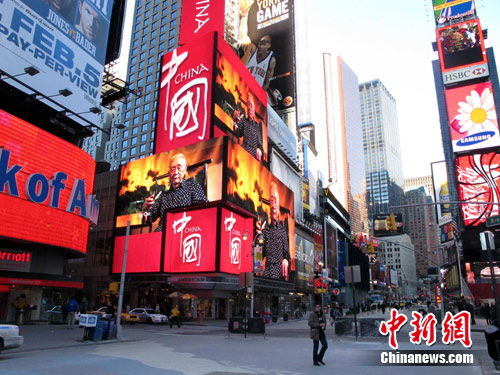 视频:中国国家形象片人物篇亮相纽约时报广场 来源:中央电视台