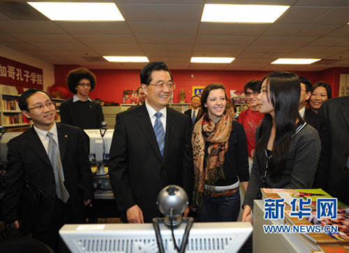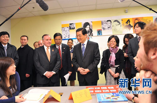 当天上午,胡锦涛来到芝加哥的佩顿中学参观。