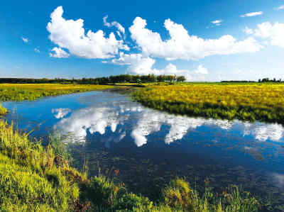 每年6月至9月,是黑瞎子岛最适合游览的时期,眼下便是这儿的黄金季节。岛上随处可见的杨、柳、榆、柞等树木,在暖风吹拂下哗哗作响,散发着激荡人心的绿意。本以为黑瞎子岛的夏天应该是凉爽宜人的,但今天阳光炽烈,最高气温高达33摄氏度。为了避免被蚊虫叮咬,人们都穿上长衣长裤,走不多时,大部分游客就已经大汗淋漓了。但岛上葱翠的树木,未经过人工雕琢的湿地环境,时而飞起的水鸟,使人情不自禁,如游画中。早就有人把黑瞎子岛称为“生态休闲旅游的圣地”,眼见果然为实。