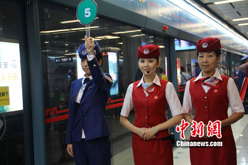 据了解,西安地铁二号线于2006年9月29日开工,历经5年建设,2011年9月16日开通试运营。试运营期间,西安地铁上线运行电客车11列,行车间隔9分20秒,初期最高行驶速度63公里/小时,运能为9437人次/小时,全天服务时间为15小时。