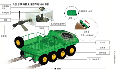 不仅能在沙漠、雪地、森林中畅通无阻,还可下水“行走”。昨日,“八驱水陆两栖全地形车”在第六届北京发明创新大赛上获金奖。当日,记者来到该车的发明单位解放军装甲兵工程学院进行了探访。