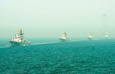 4月26日,中俄海上联合军演进入第五天,双方舰艇、飞机在青岛附近的黄海海域举行了盛大的海上阅兵仪式和联合护航、联合反劫持演练、对空对海对潜实兵实弹演练。