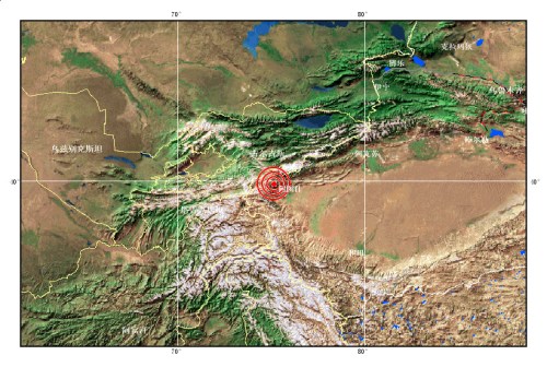 中新网6月1日电 据中国地震台网测定,北京时间2012年6月1日20时32分在新疆维吾尔自治区克孜勒苏柯尔克孜自治州乌恰县(北纬39.9,东经75.1)发生5.0级地震,震源深度7公里。