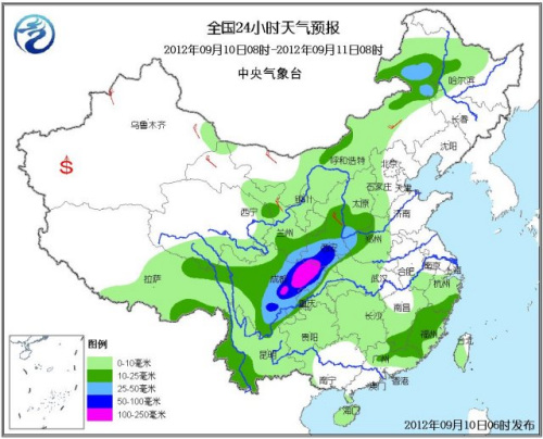 这股冷空气不光给彝良震区带去降雨,它波及范围非常大,全国都会自西向东迎接一次大规模的降雨天气,今天从内蒙古东部经过山西、陕西、甘肃一直到四川、云南、西藏降雨非常普遍,以小到中雨为主,特别是在甘肃的东南部、陕西中南部、四川东部、重庆西部、云南东北部等地有大到暴雨,这其中在四川和陕西交界的地方可能会有大暴雨。为此中央气象台今天早上6点钟也是再次发布暴雨蓝色预警提醒大家多加防范。这次冷空气影响时间大概会持续四天左右,所到之处降温也会非常明显。