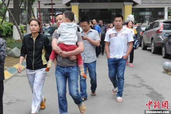 据中国地震台网测定,北京时间2013年4月20日8时2分在四川省雅安市芦山县(北纬30.3,东经103.0)发生7.0级地震,震源深度13公里,成都市震感强烈。图为成都民众从睡梦中惊醒,逃离住宅大楼。中新社发 刘忠俊 摄