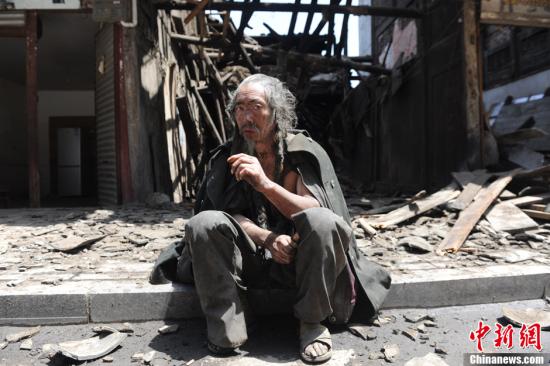 4月20日,四川雅安芦山发生7.0级地震,一位当地民众在震后路边避险。中新社发 张浪 摄