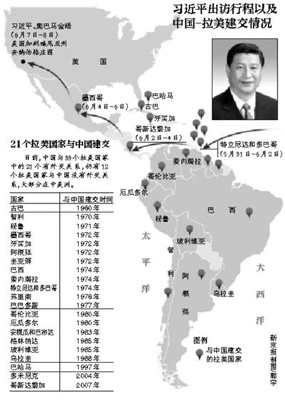 开始访问拉美三国,6月7日至8日将在美国加州庄园会晤奥巴马总统
