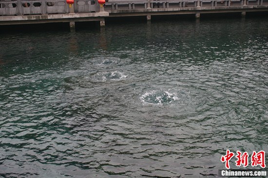 趵突泉水分三股,昼夜喷涌。所谓“趵突”,即跳跃奔突之意。中新网 温雅琼/摄