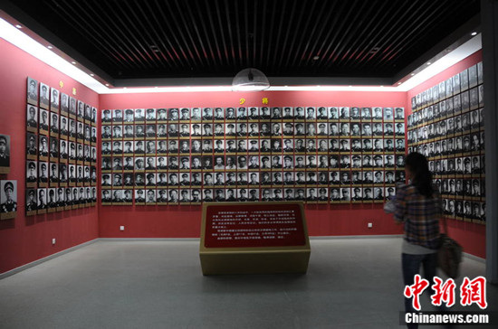 馆内照片墙上陈列与山东有关的中共将领。中新网 温雅琼摄