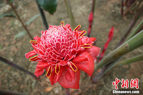 园内的观赏性姜科植物“瓷玫瑰”,原产于哥伦比亚、厄瓜多尔、印度等地。中新网 温雅琼摄