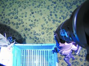 “蛟龙”号拍摄到的海底铁锰结核(7月3日摄)。 新华社发