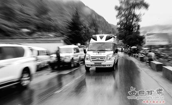 漳县地震灾区,“120”在紧急运送伤员。本报记者 盛学卿