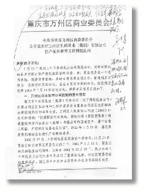 在刘虎看来,问题就出在这份文件第一页上,马正其于7月21日批示:“木已成舟。只要符合基本政策,一定以发展为重,妥善处理好此事,让企业加快发展。请建华(汪建华,时任万州区副区长)、在云(贾在云,时任万州区商委主任)、永坤同志负责处理好。”