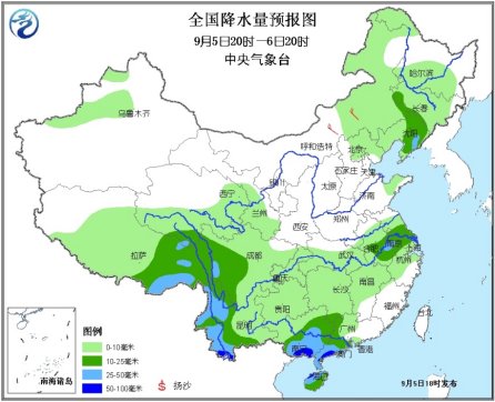 中新网9月5日电 据中央气象台消息,预计今天晚上到明天白天,东北东南部、华南南部、西南南部以及西藏东部等地的部分地区有大雨或暴雨。6日夜间起,广东、广西、云南等地降雨将逐步减弱,但云南西部的较强降雨仍将有所逗留,迪庆地震灾区仍有降雨,易引发地质灾害。