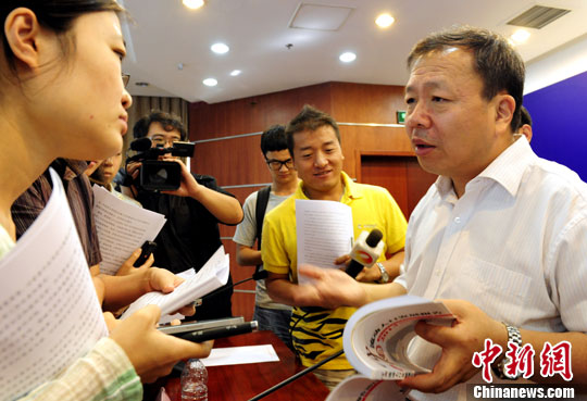 图为国家卫生计生委流动人口司司长王谦发布会结束后回答记者提问。中新社发 张勤 摄