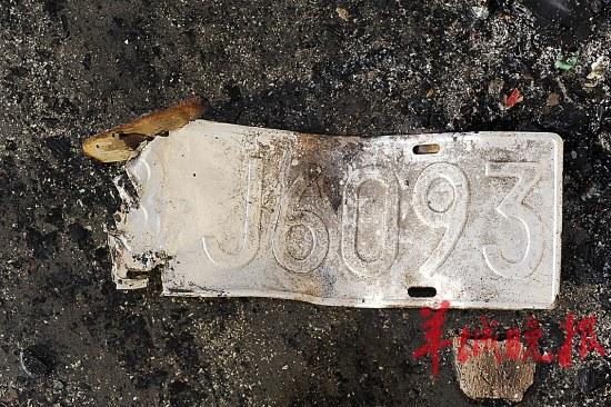 经初步了解,发生爆炸车辆为一辆粤B牌货车,现场发现疑似该车的车牌 记者 黄巍俊 摄